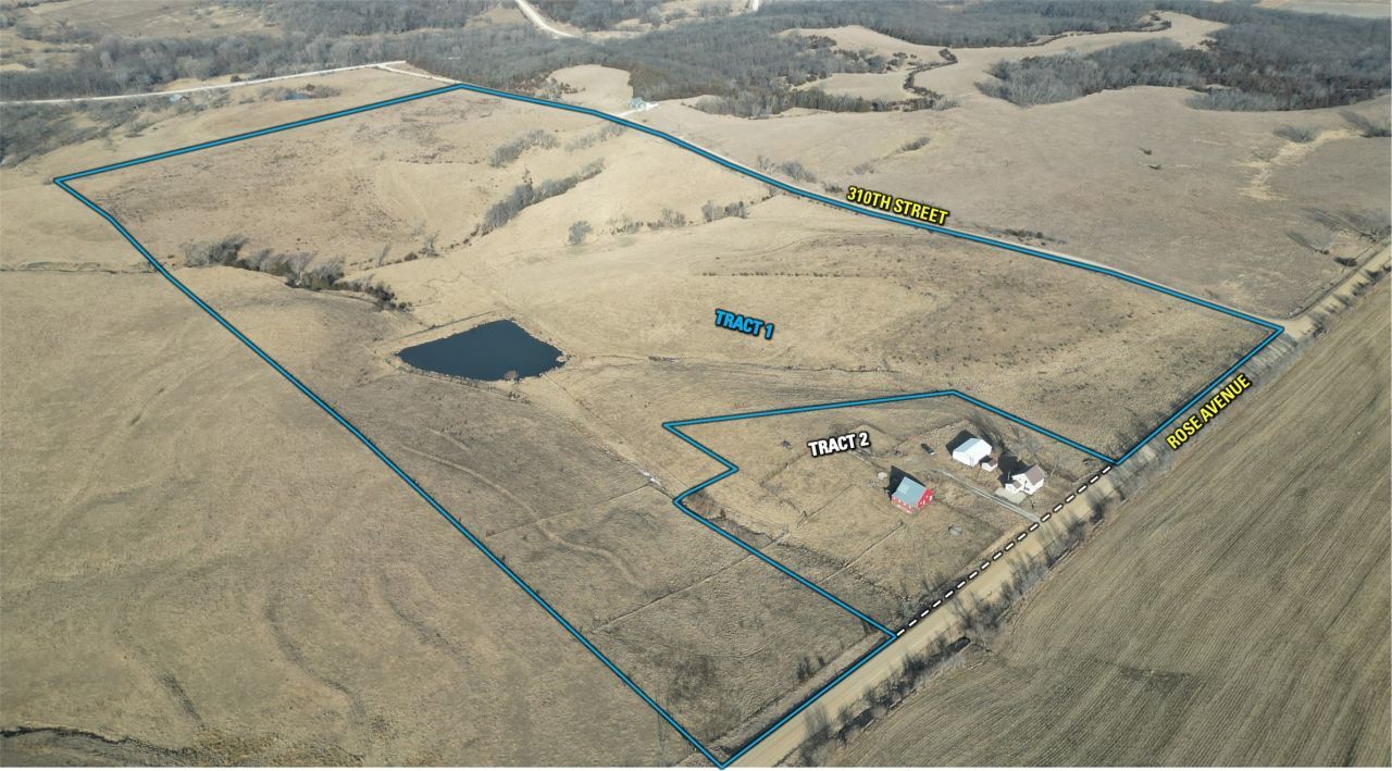 Guthrie County, Iowa Online-Only Land Auction! We are pleased to be representing FN'J Farms LLC in the sale of 80 acres m/l located directly north of Menlo, Iowa, on Rose Avenue. The farm will be offered as two separate tracts offering pasture ground, existing fencelines, and a rural acreage site. These tracts will be sold via an online-only auction with bidding concluding at 1:00 PM CST on Thursday, April 30th, 2026.