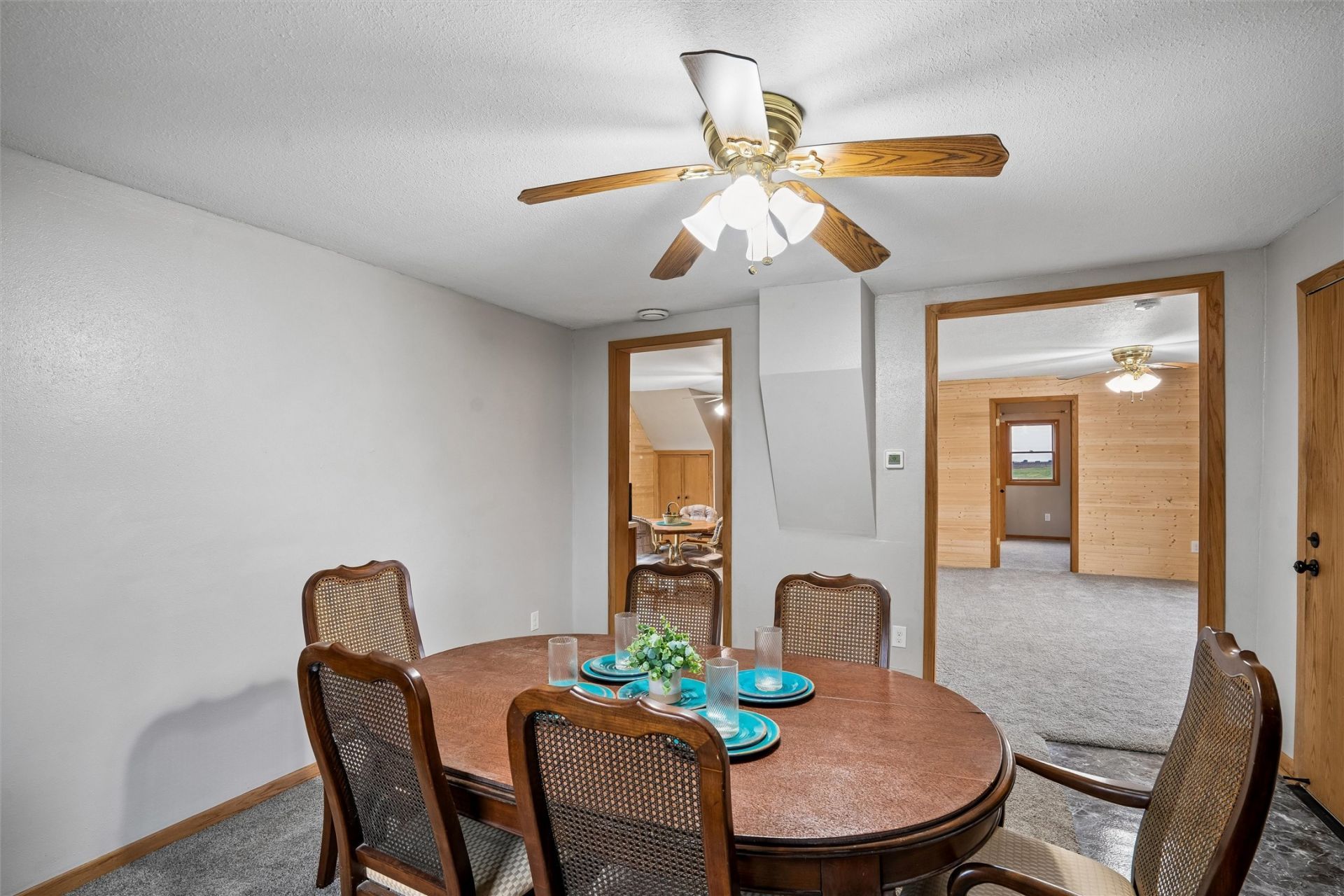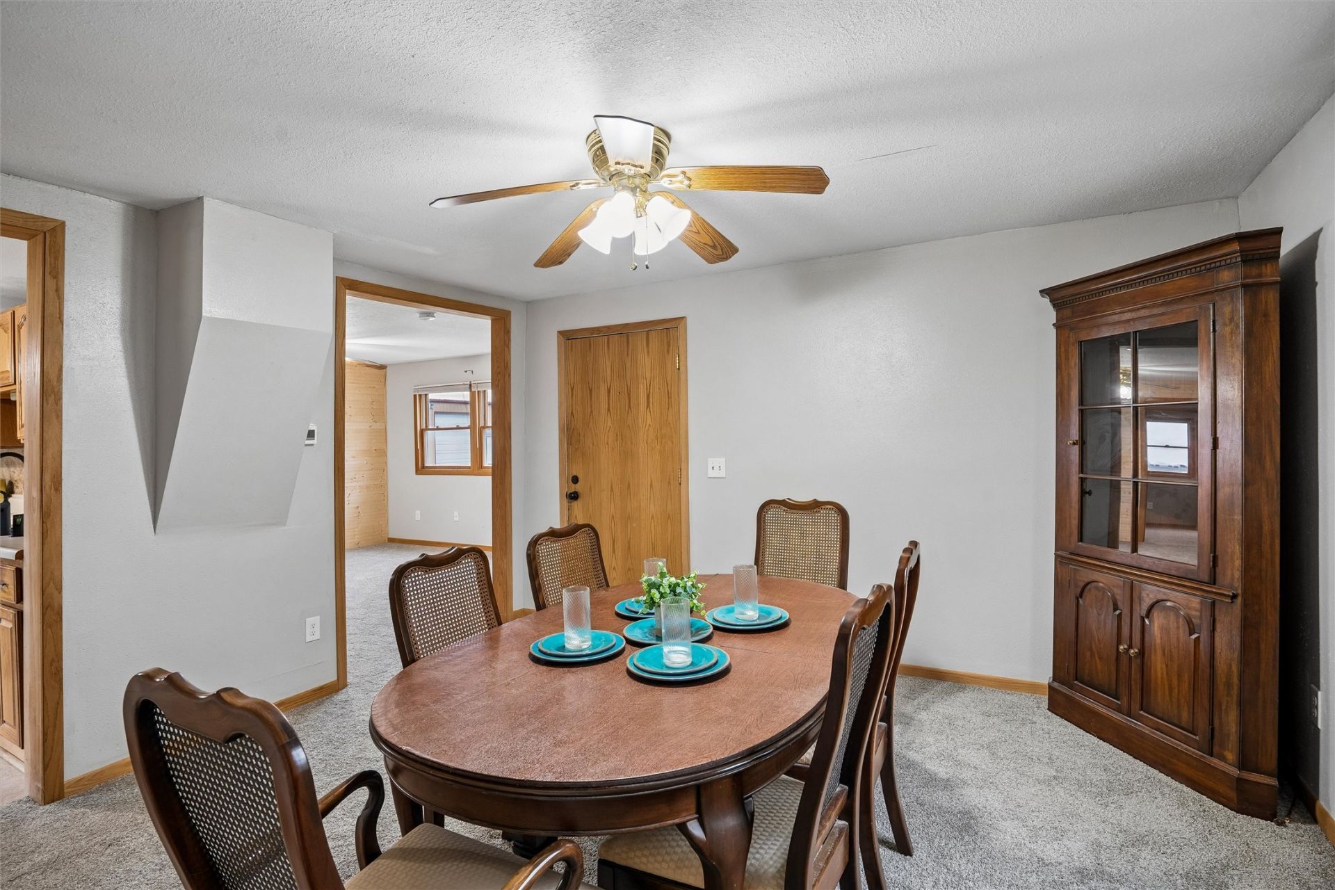 This home was bought and totally updated 2025. It is now 3 br. and 1 new full bath, All new electric in upper level, flooring walls, stairs, ceilings, closets , fixtures and insulated. main level has primary bedroom with new closet, new carpet on this level, large living room, large dining room( cherry dining room set stays) new paint every where. New central air, new slider, new front outside door. Kitchen has pantry with a roll out storage unit. All appliances stay. new roof 2022.Wood look and very spacious. New gutters, new shutters, enclosed front porch. Across from Fire station. I-35 school.