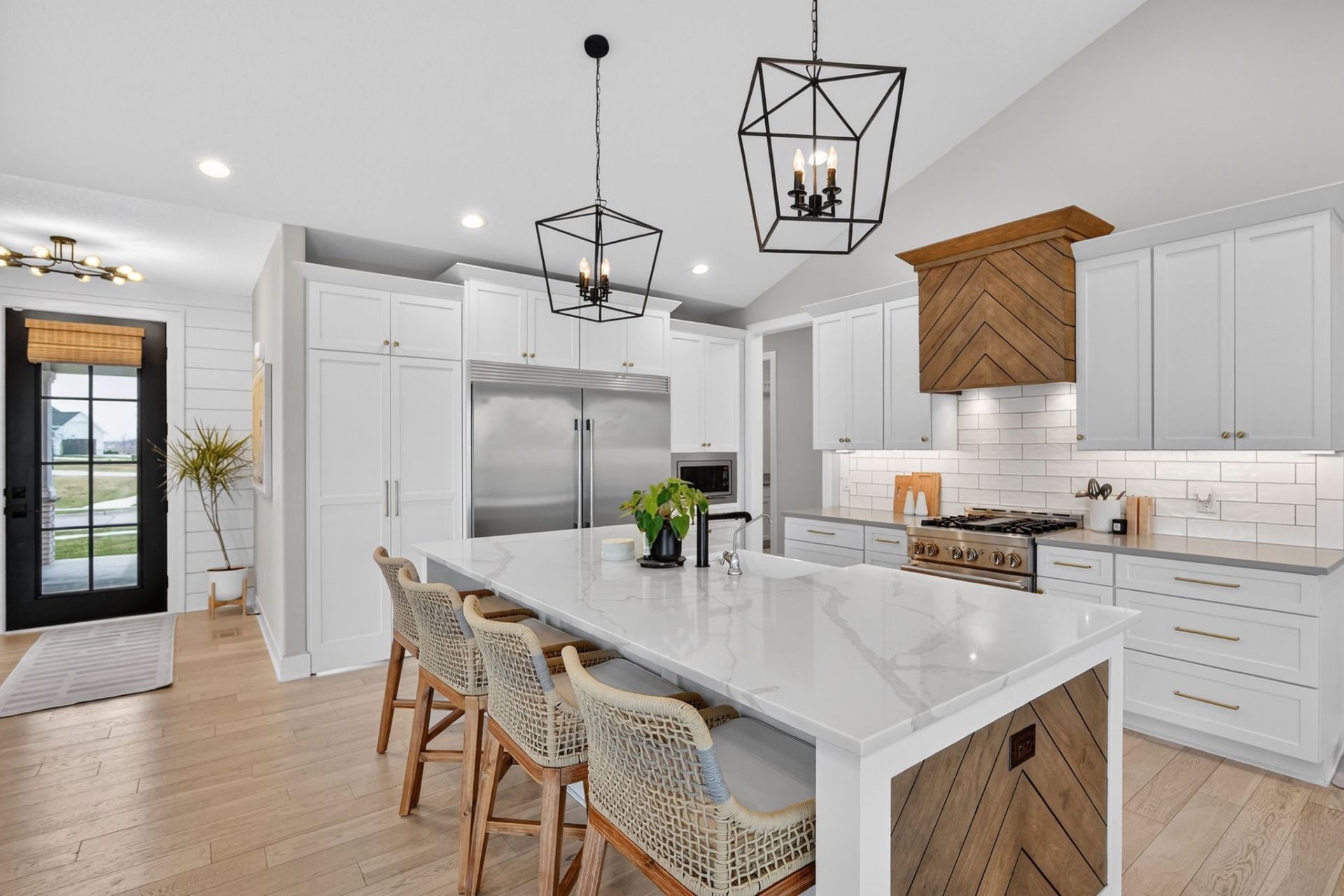 Make every day feel like a getaway in this incredible home, where the backyard steals the show and the memories are waiting to be made. Imagine summer days spent in your heated & cooled 15' x 30' saltwater pool; complete with auto cover, sun deck, fountains, and evening lighting - followed by nights on the extended patio or screened-in deck with friends & family. Thoughtfully designed landscaping & sleek wrought iron fencing create a resort-style setting that's just as perfect for quiet mornings as it is for hosting unforgettable gatherings. When you head inside, you'll be impressed by the sun-filled, open-concept living area w/vaulted ceilings, striking stone & shiplap fireplace w/built-ins, 8' doors, oversized windows, & seamless flow throughout. The kitchen boasts an oversized island, upgraded appliances, & hidden pantry, all opening to a spacious dining area. The primary suite offers private deck entry & a spa-like bath w/oversized tiled shower, soaking tub, abundant linen storage, & custom walk-in closet connected to the laundry room. The walkout lower level is built for entertaining w/a large living area with second fireplace, full bar, two additional bedrooms with a Jack & Jill bath, generous storage, & a convenient powder bath. Additional highlights include an epoxy-finished heated garage, Culligan water filtration system, water softener, whole-home humidifier, & custom window coverings throughout - offering a home you'll love just as much as the lifestyle it creates.