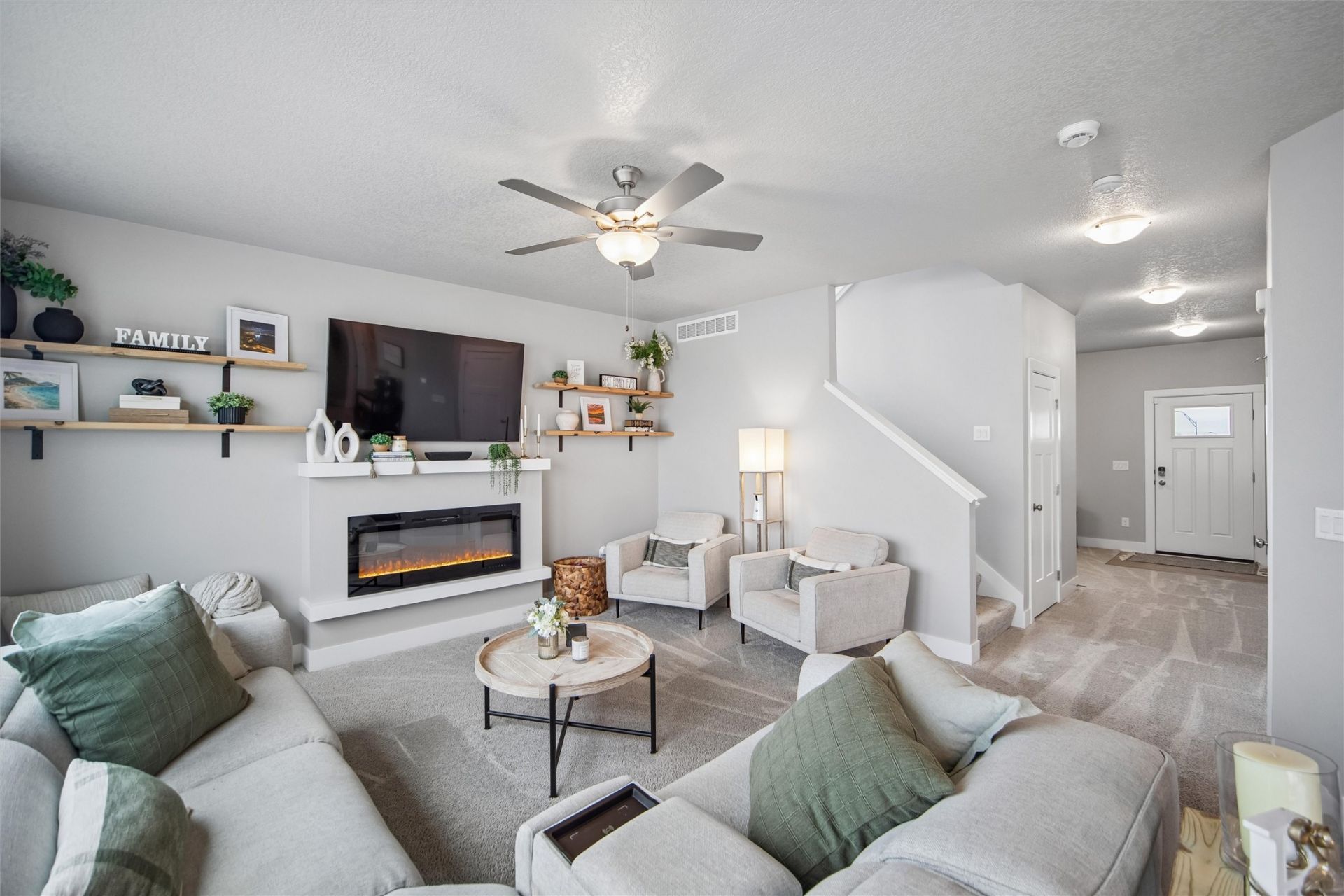 With over 2200 square feet of finish, you will have plenty of room to grow in this immaculate two story. As you enter, you will fall in love with the 9-foot ceilings, LVP flooring, drop zone and flex space. Enjoy cooking in the sparkling kitchen with quartz countertops, walk in pantry and center island. The living room is bathed in sunlight with massive windows. Upstairs you will find the primary suite with a walk-in closet, private bath with dual sinks and a water closet. There are three additional bedrooms, linen closet, and a full bath. The 2nd floor laundry has custom built-ins and a stand for the washer/dryer. All appliances stay. Plenty of storage space in the unfinished basement. Enjoy the outdoors from the patio overlooking the fenced yard with shed. Other great features include custom shelving throughout much of the house, security system, linear electric fireplace, landscaping, custom Hunter Douglas blinds ?some remote controlled. Home backs up to a future park. Welcome home!