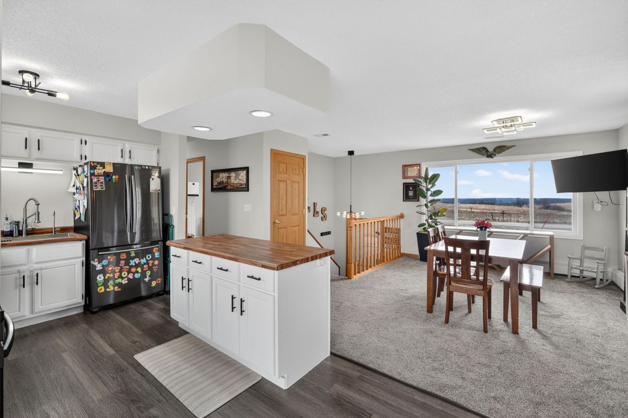 Inside, the open main floor welcomes you with a comfortable flow designed for everyday living. The kitchen and dining area feature updated appliances and durable LVP flooring, while brand-new carpet adds warmth to the family room and all three bedrooms.