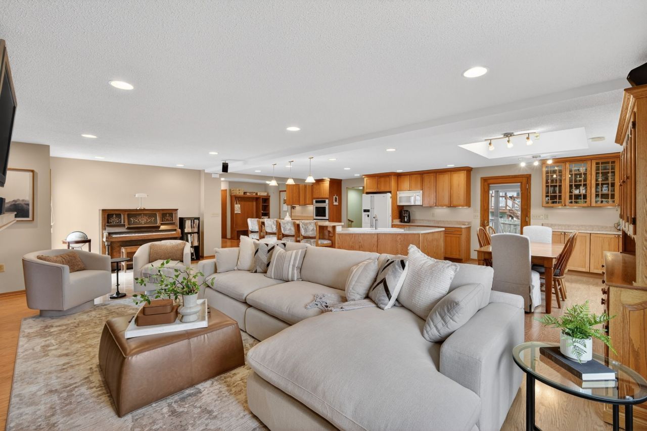Not your typical early-2000s 2-story, this meticulously cared-for home has been thoughtfully remodeled and expanded to nearly double its original square footage with a layout that lives beautifully today. The main floor offers true open-concept living with a spacious kitchen, dining area, and family room anchored by a gas fireplace with custom built-ins. Large windows and skylights fill the space with natural light, while a covered deck off the kitchen and dining area (rare for homes of this age) extends living outdoors to the fully fenced backyard with a powered shed, ideal for a workshop or extra storage. The main level also includes a welcoming sitting room, office/den, powder bath, and drop zone off the garage. Upstairs, the remodeled primary suite features a vaulted ceiling, tile shower, soaker tub, dual vanities, private water closet, and two closets including a walk-in. Two additional bedrooms, full bath, and laundry complete the upper level, with one bedroom offering an attached flex room for a 4th bedroom, playroom, or hobby space. A second staircase leads to a private suite with its own 3/4 bath, perfect for guests, teens, or multigenerational living. The finished lower level offers a massive family room ideal for a theater plus a large flex/craft room with access to a breezeway between the garage and backyard. A one-of-a-kind home with space & flexibility in a prime Grimes location near South Prairie Elementary, parks, Heavenly Delights, and other local favorites.