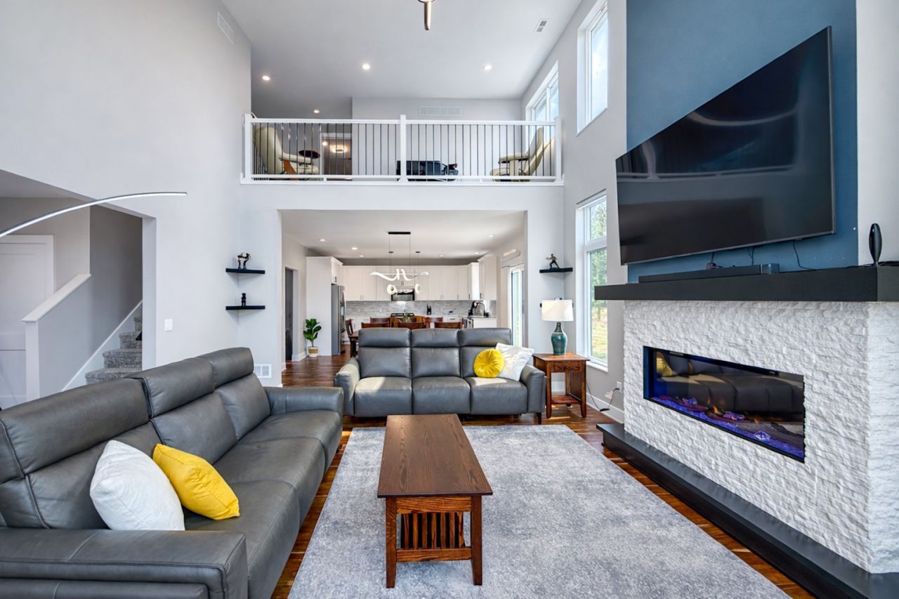 Situated on 2.69 timber-surrounded acres just minutes from town, this exceptional 6-bedroom, 4.5-bath home offers over 4,135 finished square feet designed for comfort, flexibility, and everyday living. Nearly every window captures peaceful views and natural light throughout. The main level features beautiful acacia hardwood floors, tall ceilings in the living room, expansive windows, and a striking fireplace anchoring the space. The kitchen offers generous workspace, a large island, quality appliances, and a hidden walk-in pantry, while sliding doors from the dining area open directly to the patio for easy indoor-outdoor living. A main-level suite with tiled shower and glass door provides excellent flexibility for guests, multigenerational living, or potential short-term rental use. The main floor also includes laundry, a convenient back entry with hall tree and half bath, plus access to the attached garage and shop space. Upstairs features a spacious second primary suite with tray ceiling, walk-in closet, dual vanities, custom tiled shower, and private west-facing balcony. Three additional bedrooms, second laundry room, full bath, and loft overlooking the living room complete the level. The finished daylight lower level adds two bedrooms, a large tiled bath, flex space, storage, and wet-bar hookups. Both garage areas include in-floor heat and a connected shop with loft workspace. This property offers privacy, space, and versatility that's difficult to replicate. Call today!